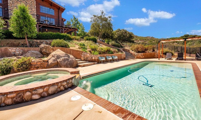 Welcome to the Fabulous Alpine Family Cabin w/Pool, Spa, Mountain & Valley Views!, an idyllic wedding accommodation nestled within a stunning 27-acre family estate in San Diego County. This charming cabin offers a picturesque setting for couples looking to celebrate their love surrounded by breathtaking mountain and valley landscapes. The serene atmosphere and beautiful outdoor spaces create the perfect backdrop for exchanging vows, hosting intimate gatherings, or simply enjoying quality time with family and friends during your special occasion.
