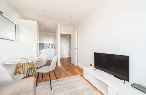 Comfortable and cosy, this newly refurbished apartment has everything a couple or single traveller could need for a pleasant stay in Eastleigh. The double bedroom has a large window letting in plenty of light, a comfortable bed, made up with fresh hotel linen, and a wardrobe for your clothes and belongings. The open plan living space comprises a modern fully equipped kitchen with everything you need to cook your own meals at home, dining table and a sofa and TV. There is high speed broadband throughout the apartment. The contemporary bathroom features a shower with a bath, toilet and sink as well as complimentary toiletries and fluffy towels for your use. Set right in the heart of town, you have an array of shops, bars, restaurants and attractions right on your doorstep.