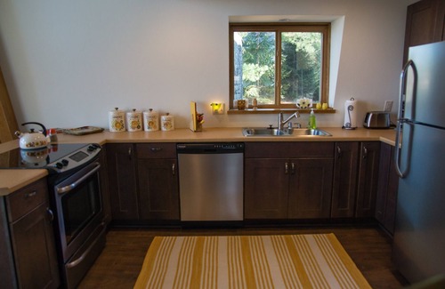 Guests have access to a retro (4) person paddle boat or (2) single person kayaks, plus a canoe. Life jackets are available for sizes 30 lbs. to adult. There’s a dock in case you want to tether your own boat or one of the complimentary ones. Also available for your use is a pair of vintage his and hers 70’s Huffy bicycles, perfect for cruising down town for lunch, an ice cream cone or a piece of the best pie around at the Crystal Café. During the summers there's badminton net set up lakeside.