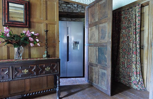 The ancient Great Hall is a fabulous space for glamorous dining, and a paneled sitting room is the perfect place to relax, in front of a roaring open fire.