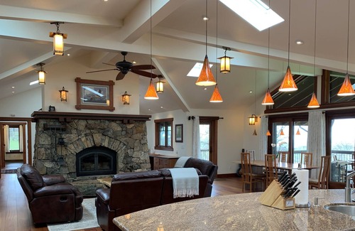Immerse yourself in nature at a beautiful, luxurious home with gourmet kitchen, great room, fireplace, dedicated office, soaking tub and private decks. Exquisite craftsmanship. Wildlife viewing, nearby swimming, fishing, hunting, hiking and Gold Country excursions.