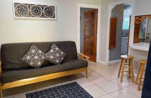 Enjoy a peaceful stay at this delightful 1-bedroom house in Honolulu. The cozy bedroom features a comfortable queen bed, perfect for a good night's sleep. The living room offers an additional space with a sofa bed for extra guests. With AC to keep you cool and a shower in the bathroom, you'll feel right at home here. We look forward to welcoming you to our place.