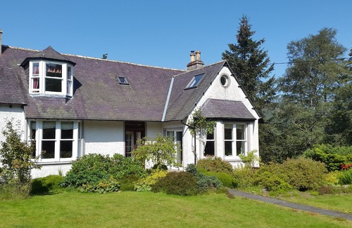 Morrone is a beautiful large family house. Sunny and south facing and also has spectacular views directly over the Cairngorms National Park. Full double glazing and gas central heating. Includes bed-linen and towels,electricity and gas. Stands in its own secluded sunny gardens of 1/2 acre. External drying room for clothes and fishing rods. 4 bedrooms - 3 double (two with a double bed and one with two matching singles) and 1 single beds - all have very good beds and mattresses; For large parties we can also offer our attached but self-contained cottage with 4 further single beds, kitchen and lounge with patio doors. The house and cottage therefore offer flexible accommodation for parties ranging from 5 to 13 people. Two spacious lounges with high-quality double sofa-bed; HD flat screen satellite TV; Sun-doors and patio; Modern kitchen with electric cooker, fridge freezer, microwave; Dining-room; Utility room with washing machine; 3 Bathrooms. Free Wireless broad band WiFi.