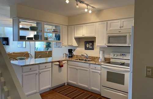 Welcome to a bright open floor plan with views of the lake and fire pit areas. Updated kitchen and flooring. Wonderful floor plan with a half bath down and two bedrooms and a full bath upstairs in the loft area.