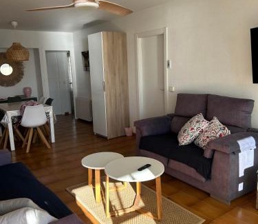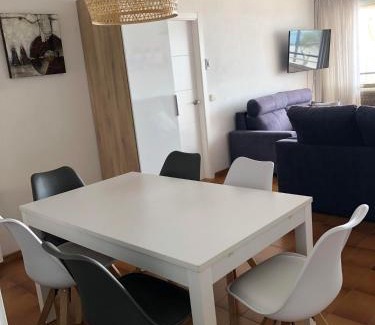 Face à La Mer is a recently renovated apartment in Calafell, near Platja de l'Estany - el Mas Mel. This beachfront property offers access to a balcony, free private parking, and free Wifi. The accommodation offers an elevator and a shared lounge for guests. Offering a terrace and sea views, the spacious apartment includes 3 bedrooms, a living room, satellite flat-screen TV, an equipped kitchen, and 2 bathrooms with a walk-in shower. Towels and bed linen are featured in the apartment. The property has an outdoor dining area. Guests at the apartment will be able to enjoy activities in and around Calafell, like windsurfing, fishing, and hiking. Marina Tarragona is 24 miles from Face à La Mer, while PortAventura is 31 miles away. Reus Airport is 26 miles from the property.