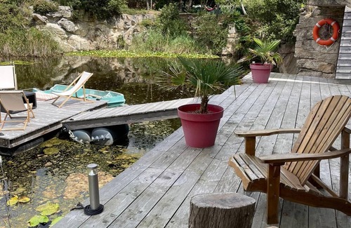 2500 m² of land with a private pond where it is possible to swim and fish (unprotected is not suitable for young children), a wooded area and in front of the house, land where it is possible to park 3 cars.