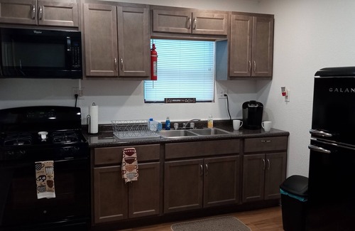 Experience the Galveston area in this adorable 1-bedroom house located less than 7 miles from Galveston Island. With a cozy bed room with queen bed and living room featuring a sofa bed, guests can relax and unwind after a day of exploring. This cool property offers fishing and birdwatching along 300 feet of bayou shoreline and is equipped with essential amenities like an iron, a full kitchen, covered parking, patio table with chairs, AC, and heating to ensure a comfortable stay. Our place is equipped for both long or short stays to make your holiday one to remember.