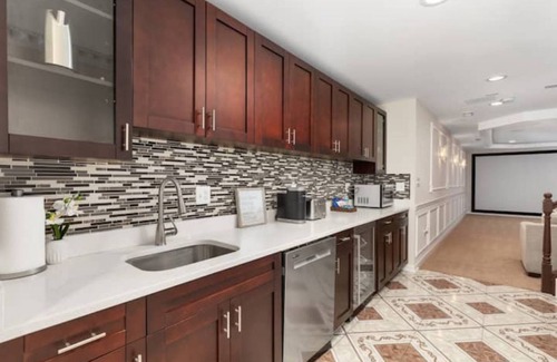 This lovely unit includes foosball table, free private parking for up to four vehicles, 1GB Verizon Fios internet access, professionally maintained outdoor space with a cozy fire pit, smart TVs in the bedrooms, a huge home theater, and much more. From the sophisticated kitchen to the generous living and dining spaces, from the comfortable bedroom to the impressive private home theater, this home is perfect for vacations, corporate rentals, visiting students at nearby GMU, business travel, weekend retreats, photoshoots, or anything else you can imagine.