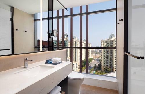 Fairfield by Marriott Chongqing Yongchuan offers 207 air-conditioned accommodations, which are accessible via exterior corridors and feature minibars and safes. These individually decorated accommodations have separate sitting areas. Beds feature down comforters and premium bedding. A pillow menu is available. 55-inch LCD televisions come with cable channels. Bathrooms include showers, bathrobes, slippers, and complimentary toiletries.