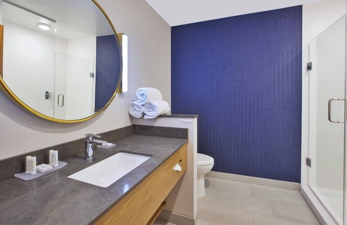 Recreational amenities at the hotel include an indoor pool and a 24-hour fitness center.