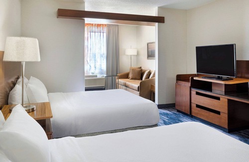Fairfield Inn & Suites Wentzville offers 90 accommodations with safes and coffee/tea makers. 37-inch flat-screen televisions come with cable channels. Refrigerators and microwaves are provided. Rooms have partially open bathrooms. Bathrooms include complimentary toiletries and hair dryers.