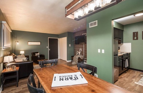 Welcome to Fairlane #8! We didn't think Lansing had enough hip, unique short term rental options, so we've set out to create some! The Fairlane apartment building has been a staple of the Capital Region International Airport for over 40 years. Located in a seasoned industrial pocket of Lansing, a 10-15 minute drive from downtown Lansing and MSU, this unit is located on the lower level of the building. We had a blast setting this one up. We hope you like it :)