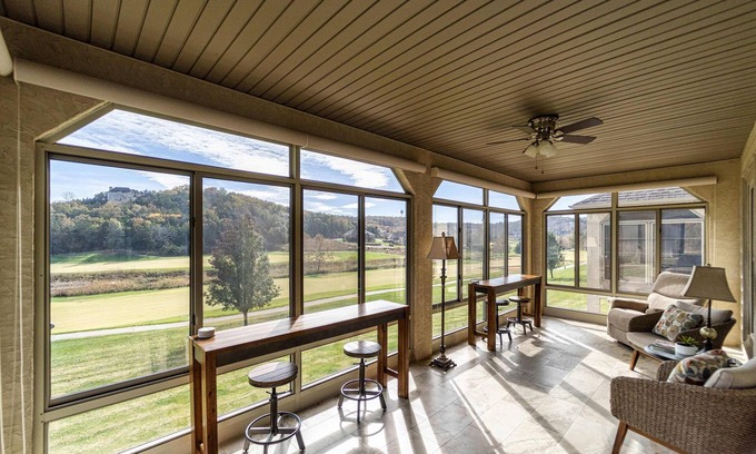 Located directly on the 14th fairway of a spectacular golf course, this gorgeous villa is the perfect host for your upcoming vacation or golf getaway to the scenic Lake of the Ozarks.