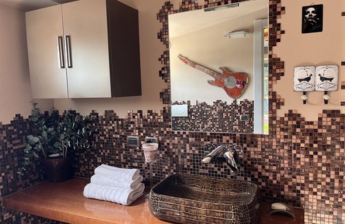 A living room, a sofa bed, a BBQ grill, and a fireplace are featured at this 3-bedroom, 1-bathroom rental. Bathroom amenities include a hair dryer, a bidet, and toilet paper. The kitchen is equipped with an oven, a stovetop, and a refrigerator, as well as an electric kettle, an ice maker, and a microwave. And you can even travel light because you'll have access to laundry facilities.