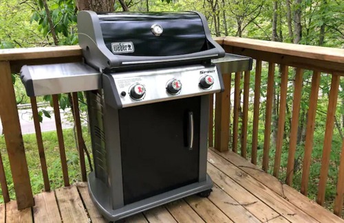 Fairy House at Morning Dew Hop Farm is a comfortable two-bedroom dwelling with kitchen, living room, and front and back decks. The bathroom is split into two half baths: one with toilet and sink and the other with shower, sink, and washer & dryer. WiFi is included with your stay and there is a flat screen TV in the living room. The kitchen features a full-size fridge with freezer, a four-burner range, a toaster oven, coffeemaker, and on the deck, a gas grill (propane is provided.) The hot tub is SHARED between the two properties.