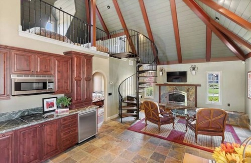 Gorgeous 1BD with loft cottage house located in an exquisite gated estate next to a modern day castle on 8 acres with a lake, sand beach, infinity pool, outdoor kitchen, manicured grounds, multiple water features. High end finishes throughout. Kitchen features a stove, microwave, dishwasher, mini fridge. Loft had 2 twin beds and a trundle. Includes paddle boards, pedal boat, ping pong, basketball hoop, kids play structure.