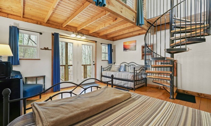 Your Ellijay escape awaits at this charming 2-storey cabin with spiral staircase to a semi-private loft and balcony. With 2 queen beds and 2 twin beds, this cozy retreat offers a tranquil setting for guests to relax and enjoy the Mulberry Gap experience!