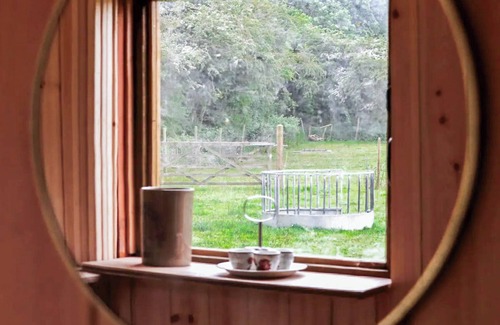 Seeking a tranquil retreat, a romantic escape and unique accommodation ’off the grid’ experience, this timber shepherd’s hut can provide a memorable holiday for adults.. 2 steps to entrance.