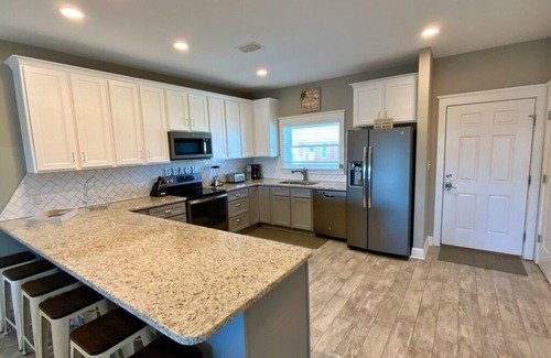 This beautifully designed house features modern amenities that cater to your every need. Enjoy the oversized kitchen perfect for culinary adventures, relax in comfortable living areas, or unwind on the back porch while taking in stunning views of the Gulf. Each of the three King bedrooms offers private baths and luxurious memory foam mattresses, ensuring comfort for you and your guests. The bunk room, accommodating up to 7, adds versatility for larger groups. Additionally, you can take advantage of the community's two swimming pools and lighted tennis/pickleball courts, creating opportunities for fun-filled activities between wedding festivities.