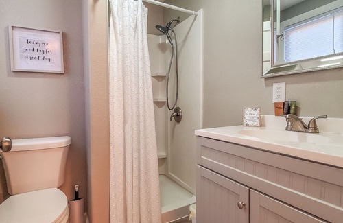 In the kitchen, you will find everything you will need for preparing a quick meal and there’s even a Keurig for that morning cup of coffee.