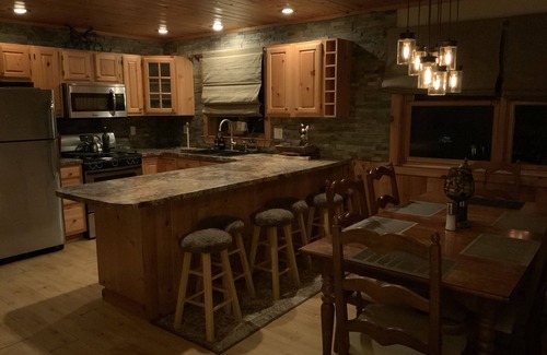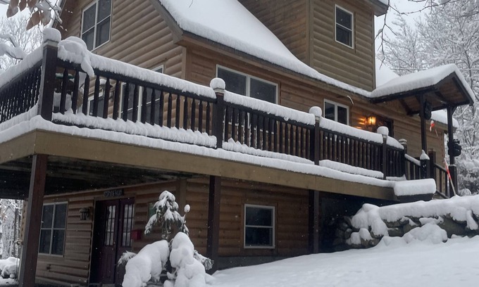 Looking for an unforgettable, perfect vacation home in the Mountains of Maine? This 5 star 3 BR 4 beds (2 queen beds 2 fulls beds 2 full futons , queen pull out couch and a twin bunk) await you and your guests. We offer 3 full baths and a well appointed kitchen. This is a desirable location for your winter fun vacation . Get cozy after a long day of winter play in front of the fireplace. The smart t.v in living room has a surround sound bar for whole house music to celebrate a long day at the mountains. with many apps including Netflix, Hulu, Prime and Pandora. The home is log sided with a wrap deck and outdoor fire-pit (so much fun post ski gathering) Gorgeous knotty pine walls and ceilings throughout. Cuddle up in the beautiful rustic decor and enjoy the highly rated comfortable beds(amazing) . Have a family get together and laughs in the recreation room and see who can really put the ball in the corner pocket at the full size pool table. You can connect your favorite tunes to the Bluetooth speaker for a night of dancing romance or a family singalong. Look no further and trust the ratings as you found what you are looking for here, in the comforts of Maine. The house is decorated in cabin style decor and tasteful design elements including the log beds made here in Maine . Repeat renters have already chosen their dates as many come: back for yearly retreats. The awesome 2 skiing areas nearby are Mt Abram and Sunday River. The quaint town of Bethel with shops and restaurants down the street. Take a look at the 5 star ratings this home has received and feel comfortable booking as we pride ourselves and our home . BONUS : A new whole **home generator** was recently installed and is now part of this home appeal to renters , minimizing any interruption potential during any storms in this winter wonderland . It is important to us that you get what you’re looking for in your Maine accommodations and we have done everything possible to make this a home you want to come back to year after year. Your Host Donna can answer any questions before you stay.