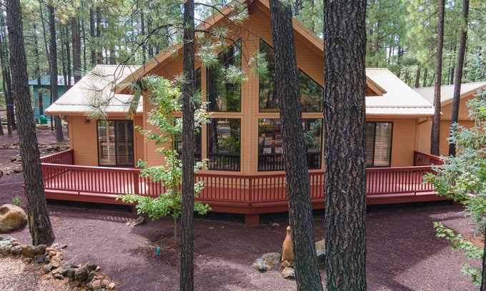 Sunset Timbers offers a great place to stay in Pinetop Country Club. Whether you plan to unwind or have your stay filled with all the activities that the White Mountains have to offer, Sunset Timbers is your retreat. Relax under tall ponderosas and take in the fresh mountain air. Skiing and antiquing activities are all within minutes. Hiking/biking trails near by also. Surrounded by a great neighborhood and a gorgeous park right next-door; this house is in the heart of it all and yet secluded.