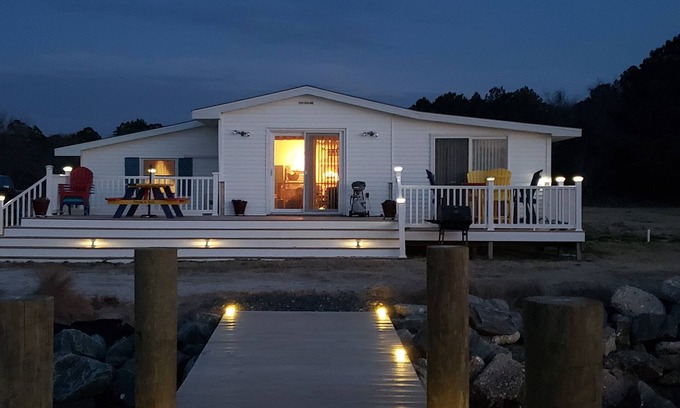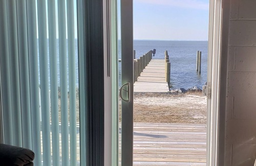 Don't let the cooler temperatures keep you from visiting the Eastern Shore of Maryland and our Waterfront cottage, located on Tangier Sound, with a private pier for fishing and crabbing. Regardless of the weather, the views are captivating. Enjoy the waterfront view from the Living Room, Sunroom, and the spacious deck. Sleeps 6; 1 Bedroom with queen size bed, 1 Bath with walk in shower, Kitchen, Living Room with pull out sofa, Spacious Sun Room with pull out sofa, Large open deck, with private pier. Ground level deck at entrance. Queen size bed in bedroom and two queen size pull out sofa's. Kitchen is fully equipped with dishes, pots/pans, utensils, appliances (coffee pot, slow cooker, toaster, blender, mixer, microwave). Dining table in the spacious sun room with an abundance of windows to view Tangier Sound. Enjoy fishing and crabbing directly off the pier and enjoy drinks and dinner on the spacious open deck. 2 miles from public boat ramp and public beach....so bring your boat, kayak, and or canoe.