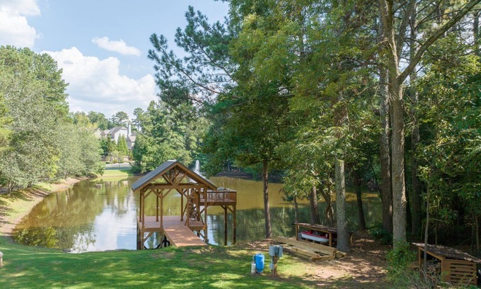 Enjoy a quiet getaway in the heart of Marietta GA! Only minutes from all of Marietta’s fine dining and activities. Truist Park beckons you from here. Listen to the cool breeze rustle through the trees on the dock while sipping coffee! This amazingly constructed home boasts rejuvenating views of it’s own exclusive pond in a secluded setting only minutes from Downtown Marietta’s dining and shopping. During the day, you can tour the Coca Cola Museum in Atlanta or visit one of the local museums in historic Marietta. At night, you can cook on the grill while listening to the chorus of crickets all around you! With a TV with DISH Satellite in the Living Room and Master plus TV's with ROKU in the other 2 bedrooms, you can log on to all of your streaming services and have a family movie marathon.