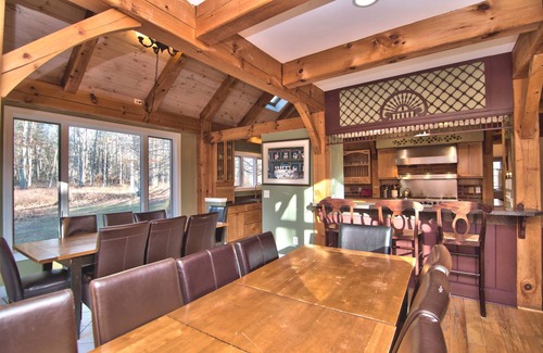 Cranberry Lodge is a Massive Post and Beam Lodge Home on over 25 private acres with 7 bedrooms plus two separate loft areas and 3 full bathrooms.
