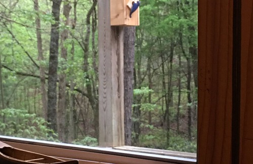 Tucked into the woods, off the beaten path--a perfect place to chill! All the amenities, including wifi, cable, washer/dryer, dishwasher, microwave and gas grill. 10 miles from Blue Ridge, GA. 3 miles from Ocoee River and whitewater rafting. Built by my son, it is not fancy, but very comfortable. A small creek runs through the property, with a firepit/sitting area nearby. One bed, one bath. No shower. Bed and bath are in the loft. New queen-sized bed with Beauty Rest mattress. A great retreat for couples, or for a writer/artist. Go hiking, biking, rafting, shopping, antiquing, fishing, sightseeing or to fairs and festivals during the day, then retreat to the peace and quiet of the rain forest! (Comfortable sofas accommodate 2 more, if needed.)