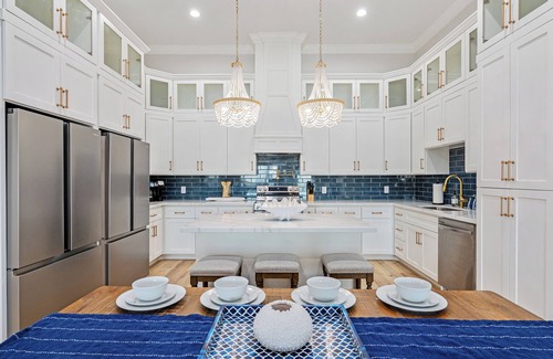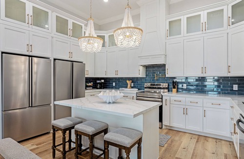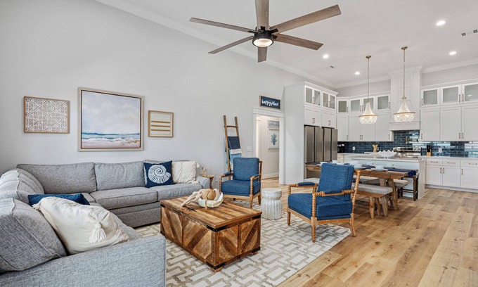 The open layout makes it easy for everyone to hang out together. Whether you're watching a movie on the 75” TV, playing board games, or prepping dinner, there’s space for the whole crew. The kitchen is fully-equipped with everything you could possibly need to host your family or friends, including 2 full-sized refrigerators and a large pantry. The kitchen and island area seats 12 people. Small appliances also include a 2-way Keurig/coffee maker, a toaster and a blender.
