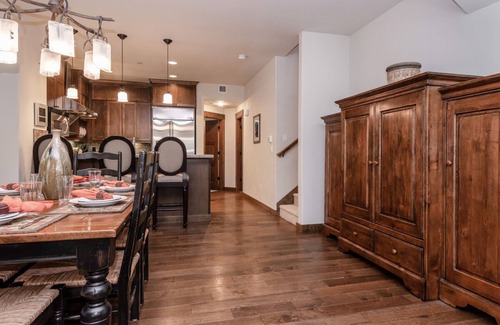 Step inside the heart of this 3-story home, where hardwood floors, soaring ceilings, and a stacked-stone fireplace greet guests with comfort and warmth. An open floor plan marries the main floor living, dining, and kitchen areas together with a rustic ambiance and modern amenities—including heated floors, surround sound, and multi-zone heating. After a thrilling day in the mountains, sink into the full-length recliner sofa or settle into 2 cozy armchairs to stream blockbuster favorites on the Smart TV For ultimate relaxation, step onto the deck for a soothing soak in the private hot tub, surrounded by breathtaking golf course views and majestic mountains. When not exploring local restaurants, take advantage of the chef’s kitchen with high-end appliances and granite countertops, perfect for whipping up delicious meals. On bluebird days, fire up the BBQ grill outside. With a 6-seat dining table and 3 high-top chairs at the breakfast bar, there’s ample space to enjoy meals together. A charming cabin-styled bunk room provides a gathering space for kids to gather on the main floor, with 1 twin-over-full bed and a private bathroom.