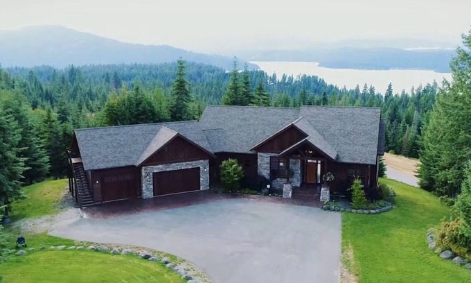 - Rustic-modern home in forest overlooking Lake Coeur d’Alene with W/D & AC