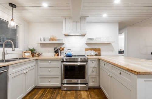 Sleeps 8. The main cottage features two bedrooms with queen and two twin beds, full kitchen, bathroom and living room. The Bunkie (located even closer to the water) features two more bedrooms with one queen and full bunk beds, as well as living room and three piece bathroom.