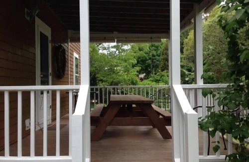 Rustic and fun, your family and friends can have great beach adventures at this antique beach house, with nine beautifully decorated bedrooms, three and a half baths, two kitchens, a large family room and parking for 6-8 cars, The Albani House makes for the perfect vacation for family and friends. Watch the sun rise from the second floor deck, or take your cup of coffee to the bluff (less than 100 yards away) and enjoy the panoramic view of the Cape Cod Bay as the day unfolds. Enjoy the beautiful beach - just a 2 min. walk away, or just sit and relax under the front covered porch overlooking the yard.