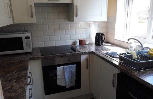 *Kitchen area has a built-in electric oven and separate hob, fridge with ice box, large microwave, toaster, kettle and all utensils needed.