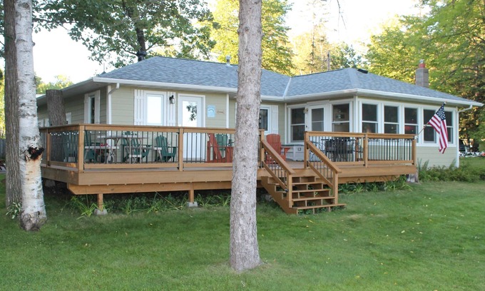 - Family Cabin on Beautiful Bay Lake-RELAX-Large Lakeside Deck, Yard, Private Dock