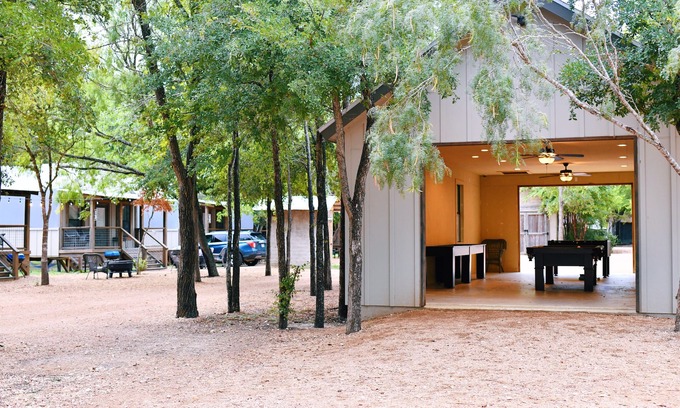 Discover the enchanting Family Cabin on creek with 2 queen beds, 2 twin beds, full kitchen & more! SG21, an ideal location for your dream wedding retreat in the heart of Seguin, Texas. Nestled alongside a picturesque spring-fed creek, this cabin offers a serene and romantic atmosphere that sets the perfect backdrop for intimate gatherings and unforgettable memories. With its generous sleeping arrangements and inviting living spaces, you and your loved ones can enjoy a delightful stay while celebrating your special day amidst nature's beauty.