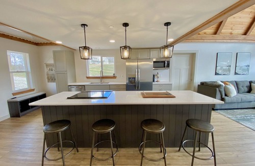 Discover a treehouse, a fishing pond, and endless adventures at our Little Blue Cabin. Located in the Ozarks, just minutes from Branson and Silver Dollar City, this cabin offers a pristine stay with everything new. It accommodates six guests with a full kitchen, bedroom, loft, and bathroom. Explore the surrounding natural beauty on a mile-long wooded trail or let the kids run and play on acres of grassy, rolling hills. After exploring, relax on the loft net. Let your serene getaway begin!