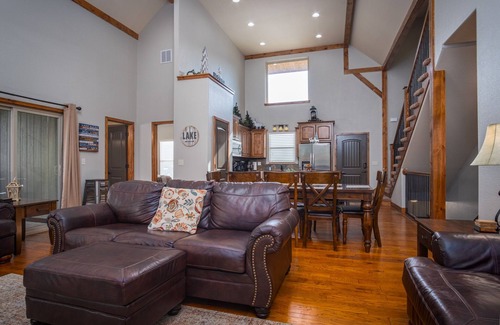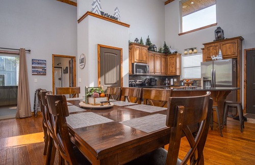 Family Canyon Lodge ~ Large Gathering Place is an exquisite choice for your wedding celebration, providing a picturesque setting and ample space for both intimate and larger gatherings. Nestled in the serene countryside of Hollister, Missouri, this charming lodge can accommodate up to 18 guests, making it ideal for hosting your closest friends and family during your special day. With its warm ambiance and modern amenities, you'll create lasting memories as you say "I do" surrounded by nature's beauty.