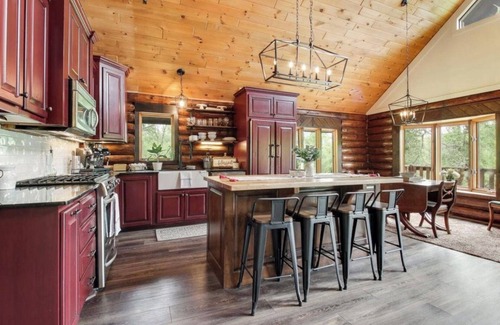 For couples planning their special day, the Family Chateau w Stream in Hayward WI offers an enchanting retreat on 12 private acres. With a unique Bavarian-style log cabin charm, it serves as an ideal wedding accommodation that blends rustic elegance with modern comforts.