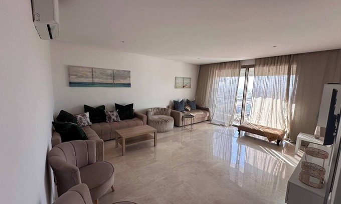 Located in Casablanca, this bright apartment is good for families. Only 5 minutes from the beach, Morocco Mall and Ain Diab Corniche, and 2 minutes from the bypass. Marjane, Carrefour, as well as many restaurants and services ( laundry room and lounge) are nearby. The apartment offers a comfortable space with equipped kitchen, cozy living room and balcony to enjoy fresh air and sea view. A convenient and pleasant place for a relaxed stay in Casablanca.