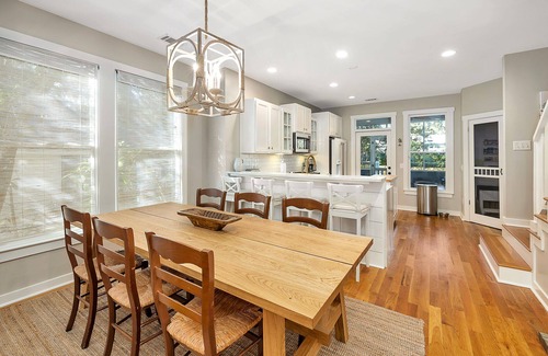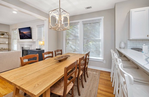 This charming cottage boasts an open-concept living space that is perfect for both relaxation and celebration. With two primary bedrooms featuring en suite bathrooms, as well as two additional spacious bedrooms sharing a Jack and Jill bathroom, hosting friends or family during your wedding festivities is effortless. Enjoy outdoor living on the wide front porch or unwind on the screened-in back porch overlooking a generous backyard, ideal for those heartfelt moments before you say "I do." Additionally, guests will benefit from beach gear rental credits, allowing for memorable seaside adventures during your stay.