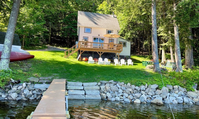 This beautiful family Cottage on 200' private waterfront on Maranacook Lake with great views of the lake. Our cottage is comfortable with a nice deck right off the living room where you can listen to the loons and enjoy your morning coffee. Nice 3 bedrooms with two full size beds in the large bedroom, two twin beds in the second bedroom and one bunk bed in the third bedroom which will sleep 6 people comfortably. It also have a well equipped Kitchen with dining table/chairs and 1 bath. Maranacook lake great for swimming, Kayaking, boating and fishing. We include four kayaks, one canoe, one four person paddle boat, one paddle board, fire pit, gas grill, Adirondack chairs, a new dock, internet, and cable TV and other amenities to use during your stay. Convenient location, about 15 to restaurants and grocery stores. Perfect spot for your vacation. No Smoking / Vaping.