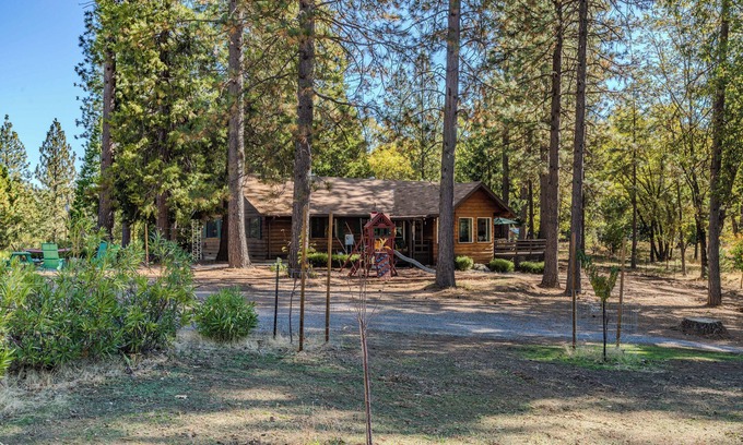 Escape to Pines and Vines Getaway – a spacious, family-friendly cabin on 5 fully fenced and gated acres in the beautiful Sierra Nevada Foothills.