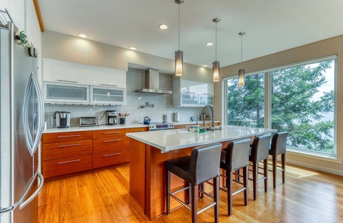 Come and create lasting memories at this beautiful, water view retreat! Grab a pair of binoculars, or look through the telescope to watch the bald eagles as they dive for fish and soar above the trees. Inside, the home has large windows so you'll never miss the view. The kitchen has all of the amenities you'll need for dining in and gathering around the table. Outside, explore the shore of Paradise Cove with your group, or watch the sunset around the fire on the deck.