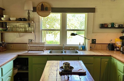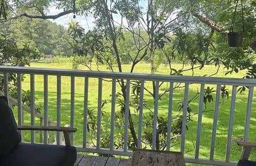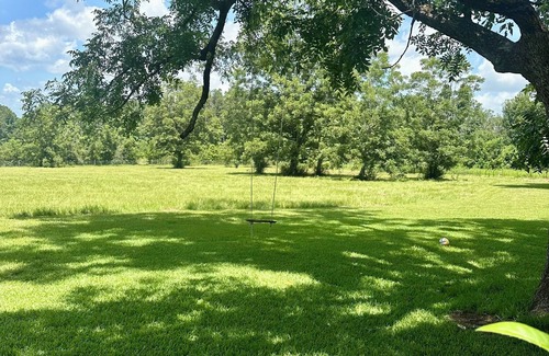 After almost 5 years, we are ready to share our farmhouse with you. This house sits on 34 acres of beautiful nature. Woods, trails, a huge fenced in yard are just a few of the reasons we love it. There is just something so relaxing about this house. The back porch faces sunsets and overlooks the first pasture. With its dining table and array of hammocks, this is where we spend most of our time. We keep 2 horses in the pasture with the barn and you can catch Mr. Randy feeding them from time to time. The bedrooms are corky and comfortable. New beds with nice bedding. Brand new appliances!