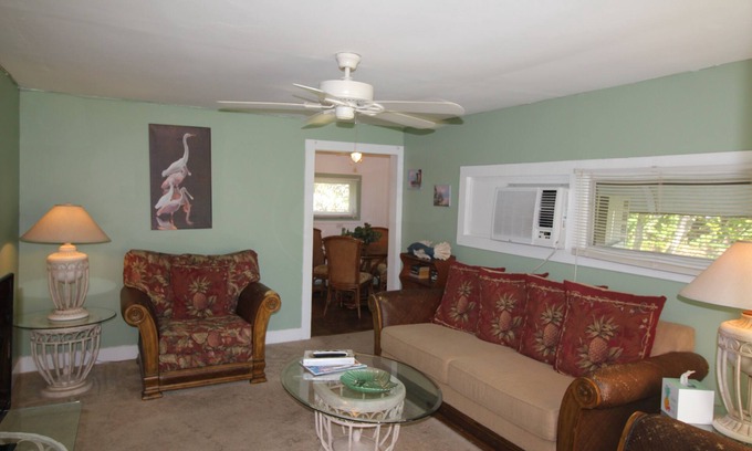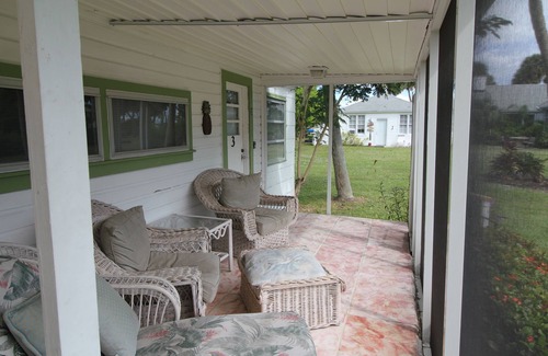 Historic two bedroom Cottage, full kitchen and bath, high speed internet and cable TV, screened in porch and BBQ grill. This cottage has all the charm of Old a step back in time in St Lucie Village on the Indian River Lagoon. The property boasts almost six acres of tropical bliss. Bring your boat or use our Kayaks, picnic on one of the Island within a 15 min Kayak trip or on our dock with a large terminal end and covered area for shade. If you like to fish this is the place for you, with the inlet only one mile away you can take your boat to the open Ocean two miles away, or fish in the Lagoon. For those who like to fish from the dock we have a fish cleaning station and rod holders as well as fresh water wash down. The dock lights up at night for you night owls. We have lots of books and games as well as a horse shoe pit. the ice machine is 800 lbs so you can fill your cooler before heading to one of our many beaches starting at 1 mile away. All holiday bookings are a minimum of 3 nights.