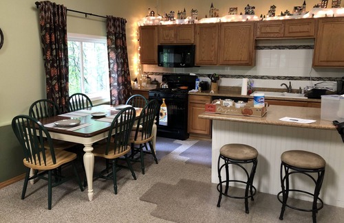 The apartment features a fully stocked kitchen, ideal for preparing meals with loved ones or indulging in post-wedding brunches. With a range of family-friendly games and toys available, you can keep younger guests entertained while the adults relax. The sleeping arrangements cater to larger groups comfortably, with a king-sized bed in the master bedroom, a queen sofa sleeper, a full-size sofa sleeper, and even a cozy "kid cave" equipped with a queen mattress—perfect for those seeking privacy. Additionally, should you have more guests, an extra apartment on the same property can be rented to accommodate larger gatherings.