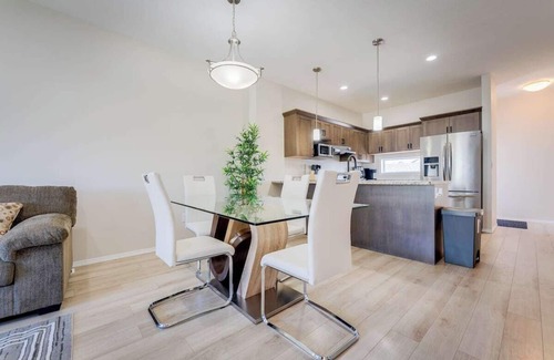 Welcome to our home. This 3 bedroom, with king beds, 2.5 baths including ensuite in the primary bedroom, has tons to offer! The main floor consists of an open concept living space, dinning area, and large equipped kitchen. The lower level is loaded with FUN for the family! Featuring a basketball Arcade, Retro 4 player Arcade and Foosball table. Outside is a patio and backyard with detached garage. Across the street is a playground, walking paths, 24/7 Gym, restaurant's and grocery stores!